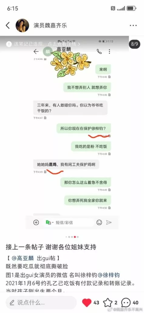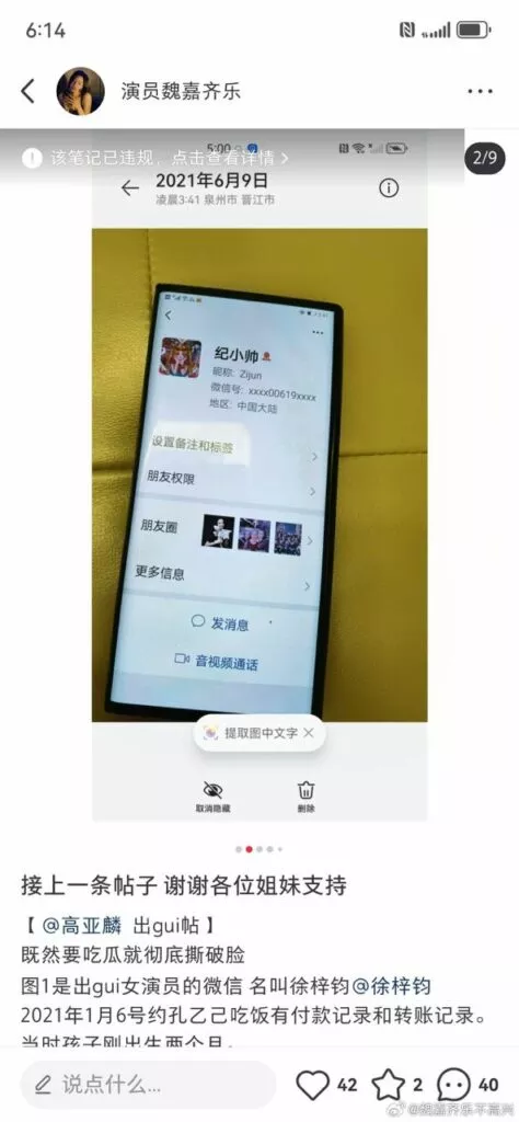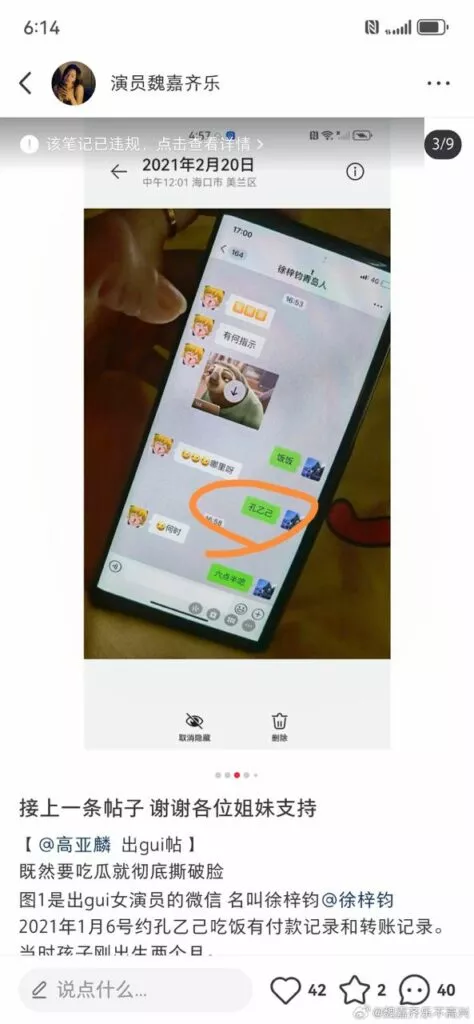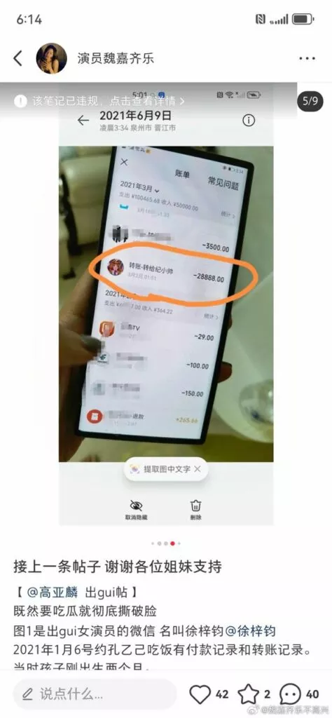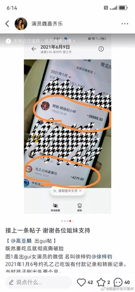 高亚麟 出轨女演员的微信名叫 徐梓钧,2021年1月6号约孔乙己吃饭有付款记录和转账记录。当时孩子刚出生两个月。为了掩人耳目把她的备注改成纪小帅。