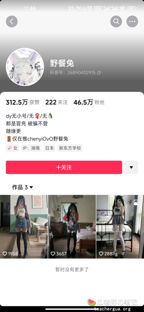 抖音网红46万粉丝野餐兔,萌妹LL类型的擦边网红,线下其实是接受任何定制的银荡LL