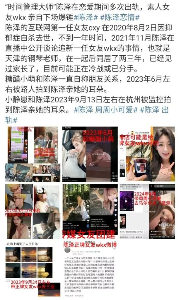 拥有1600万粉丝的抖音网红陈泽,近期被前女友曝光,称他曾多次私下与多位女网红聚餐饮酒并约会。这一事件不仅牵涉到一些知名的女网红,还包括了几位新崛起的美女网红。
