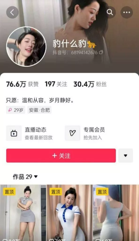 抖音上拥有30万粉丝的29岁美少妇【豹什么豹】散发着成熟女人的独特魅力。她的一举一动都流露出优雅与自信,完全颠覆了所谓的纯欲风,在她面前,这些都显得幼稚可笑。近期,她的私人定制福利视频被曝光,直播间的榜一大哥以高价定制了一对一的果聊体验,令人瞩目。