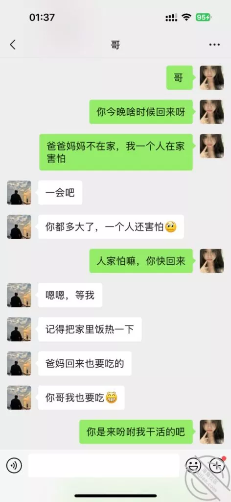 一直没说,其实我们两个是重组家庭,我跟了我的妈妈,我哥哥跟了他的爸爸,我们两个只相差几岁,严格来说,算是亲哥哥嘛?我也不知道,但是我很回来我的哥哥,我哥哥什么都可以给我做,我饿了给我做饭,我冷了给我买衣服,不定时的会问我钱够花嘛?会自己省钱出来给我花,其实如果,我是说如果,我不结婚,哥哥永远陪着我,我也是可以的,但是哥哥总归是要结婚了,她总归是要有自己家庭的,但时候还会顾得上我嘛?