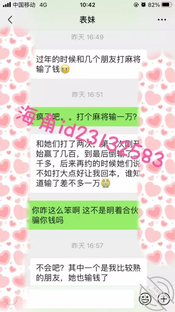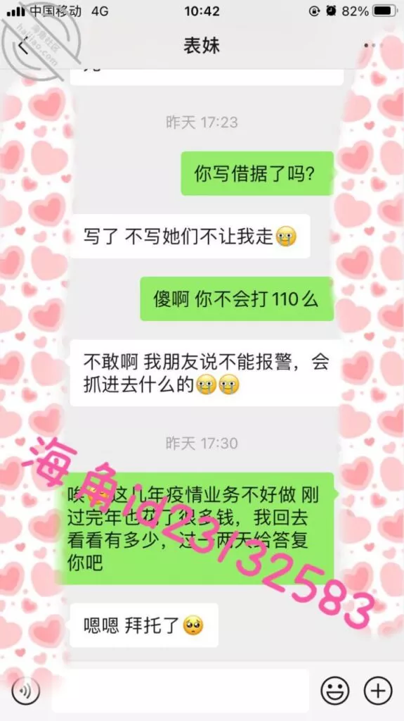 表妹还了最后的钱后,前几天又找我小号想借钱,原来之前欠的一万块她自己找朋友借钱还了,现在应该没办法又要找我借。