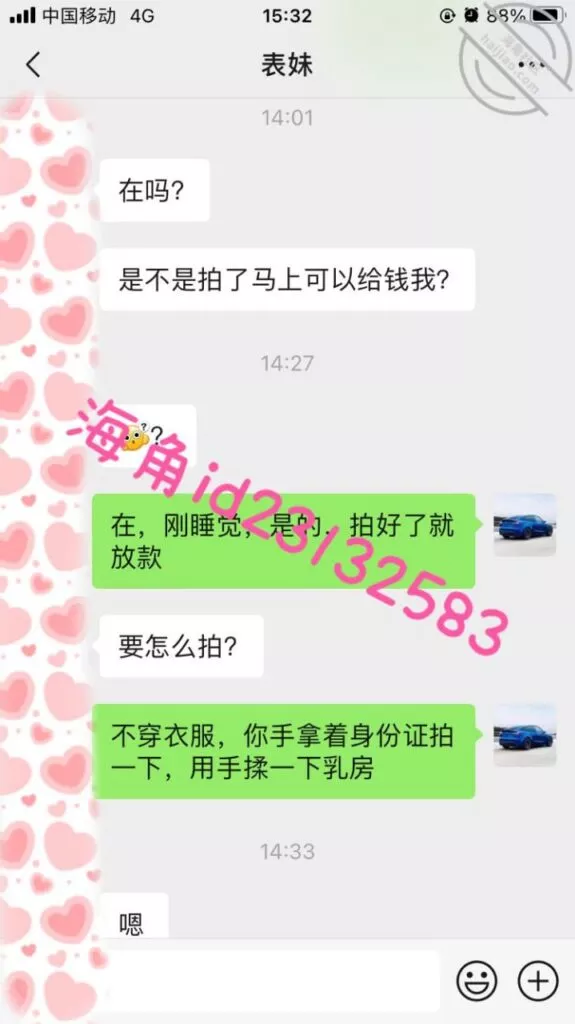 微信小号加了表妹之后她说想借1万,我问她有没有房子车子和工作社保,这属于明知故问让她跟着我的节奏走,然后引导她拍果贷视频给我,之后她就没有回复我了,希望她找不到其他人借钱吧