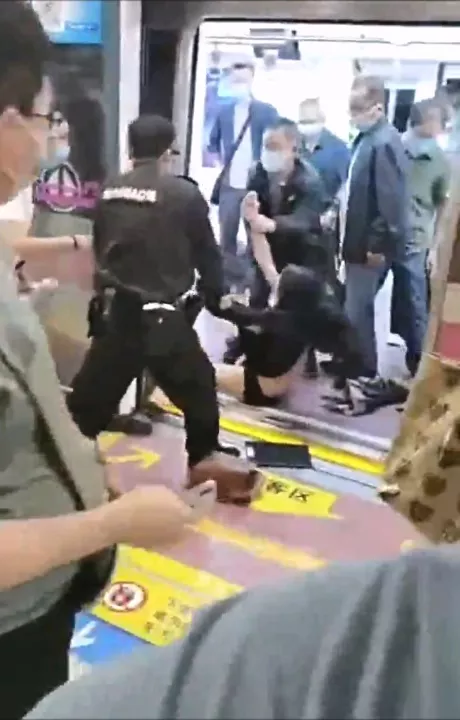 乘客郭某在地铁三号线前往青龙寺站时,与对面的乘客陈某因接打电话太大声惹众怒发生争执并轻微冲突。保安员陈某某见状赶到,要求两人下车处理分歧,但郭某拒绝。列车到达大雁塔站后,保安员强行将郭某拉下车,导致其部分身体暴露在外。