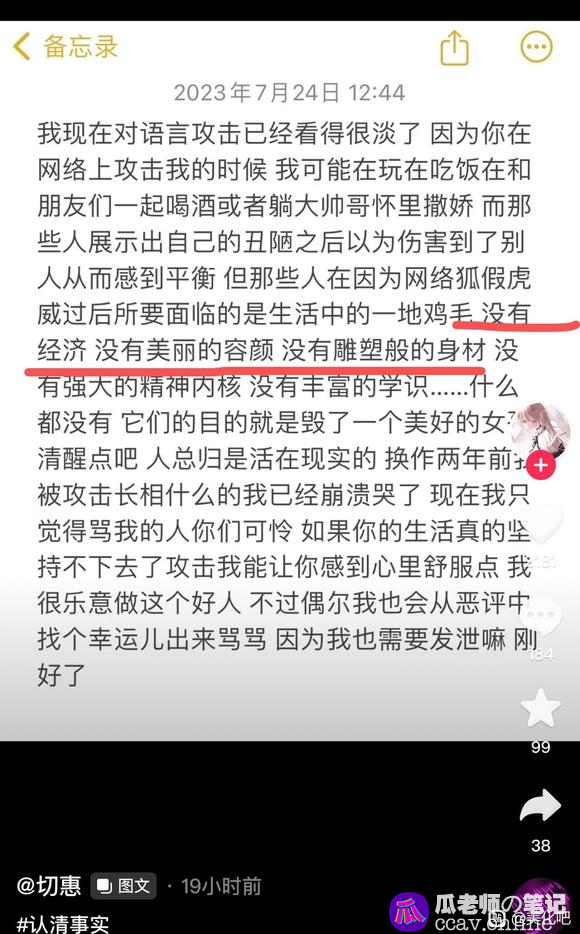 美化圈第一人设切惠大小姐,史诗级翻车现场,不仅所有的人设全都是编造,甚至连妈也要偷别人的,偷取现实好友的照片伪装自己,把自己打造成家世显赫的大小姐,还喜欢到处约炮自己给自己录制做i小视频。