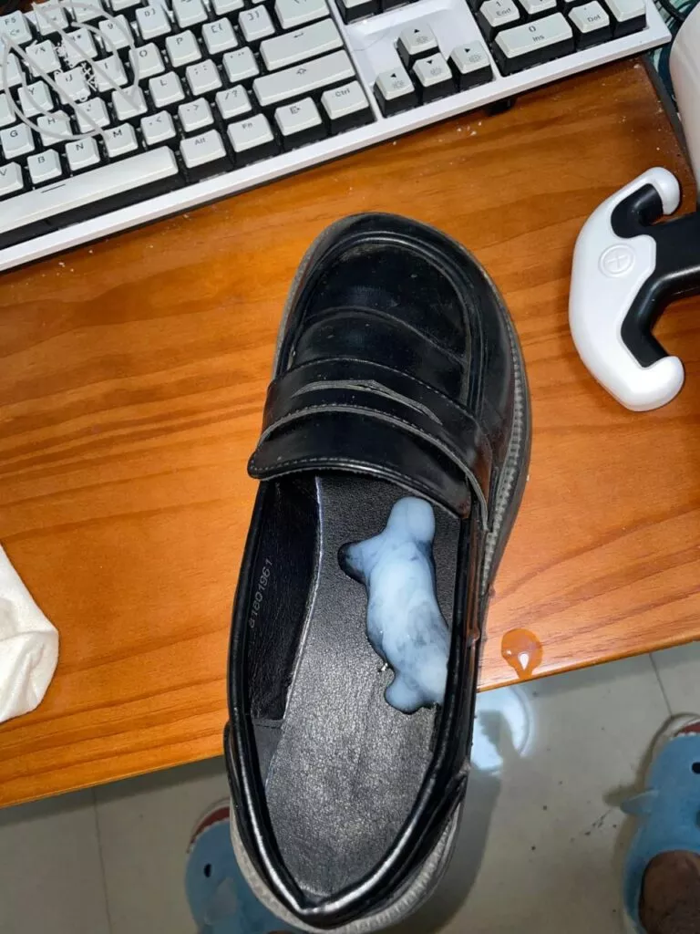 听了兄弟们的话!!我这次真大胆了一把!有兄弟说让我射表姐的内衣上别擦,看看表姐的反应!这次我狠了狠心,还是没敢射她内衣上!我怕发展的太快,被她发现了就死定了!但是这次我就听兄弟们一把!半夜表姐回屋里睡了,我偷偷的在电脑屋里看黄片,然后从鞋柜里拿了表姐一双毛毛的鞋子!开始了我的小小计划,那就是我要射满她的搔鞋子!来个热乎的图!刚射的!爽死我了!这次我就不擦了!!心里好害怕,射的太多了好像,射完我就把鞋子放到鞋柜里了,这双鞋她穿了很久,冬天了,可能是因为太冷,所以她几乎天天穿这双!我也最爱这双鞋了!软软的,伴随着表姐的脚丫香味,我直接忍不住!!