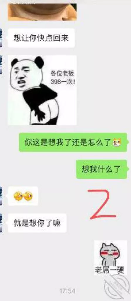在我努力奋斗加班的时候,妹妹看我没有回复,于是发了两张照片,这让原本奋斗一天的x师傅我更加的欲火焚身了,只能告诉妹妹,顶住,我马上回来。