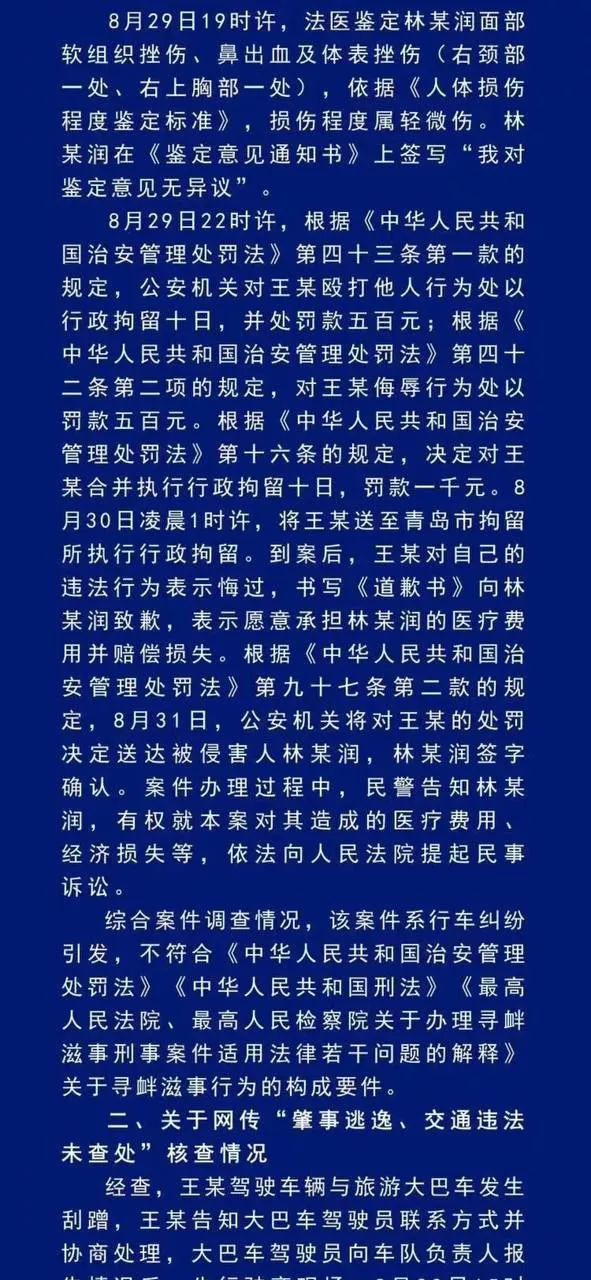 据报道,林某目前在青岛经营民宿,当时车上还有乘客和孩子。事发时,林某因为对方是女性,选择没有还手,但仍遭到女司机的辱骂和殴打。林某在事后表示,由于头部受伤,他正在住院治疗,并且有头痛、恶心等症状 。