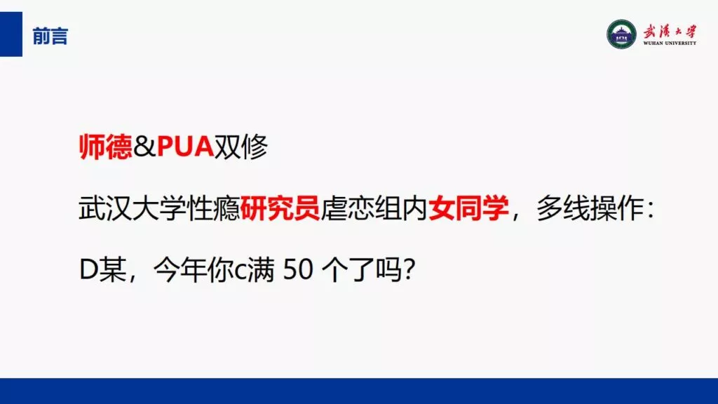 c满50个!24页PPT曝光武汉大学特聘副研究员多线齐开师生恋[内附原件]